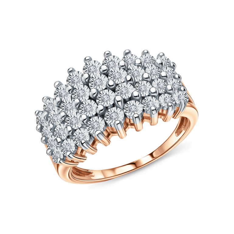 Кольцо с 36 бриллиантами природными, 0.148 карат, огранка круг 17 граней, цвет 2, чистота 2, тип огранки А; Розовое и белое золото 585 пробы.