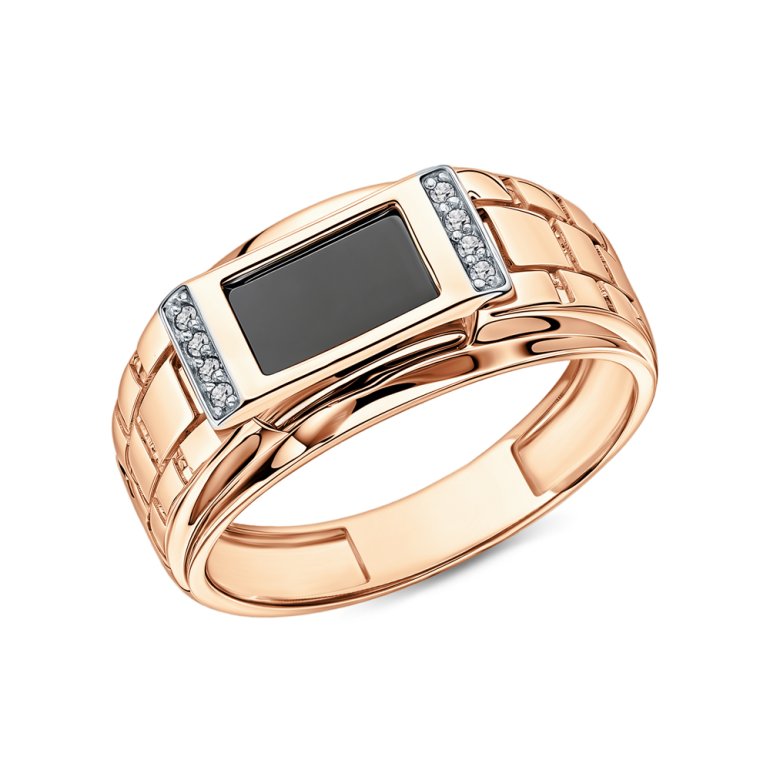 Кольцо, вставка: фианит бесцветный;  фианит черный; Розовое золото 585 пробы.