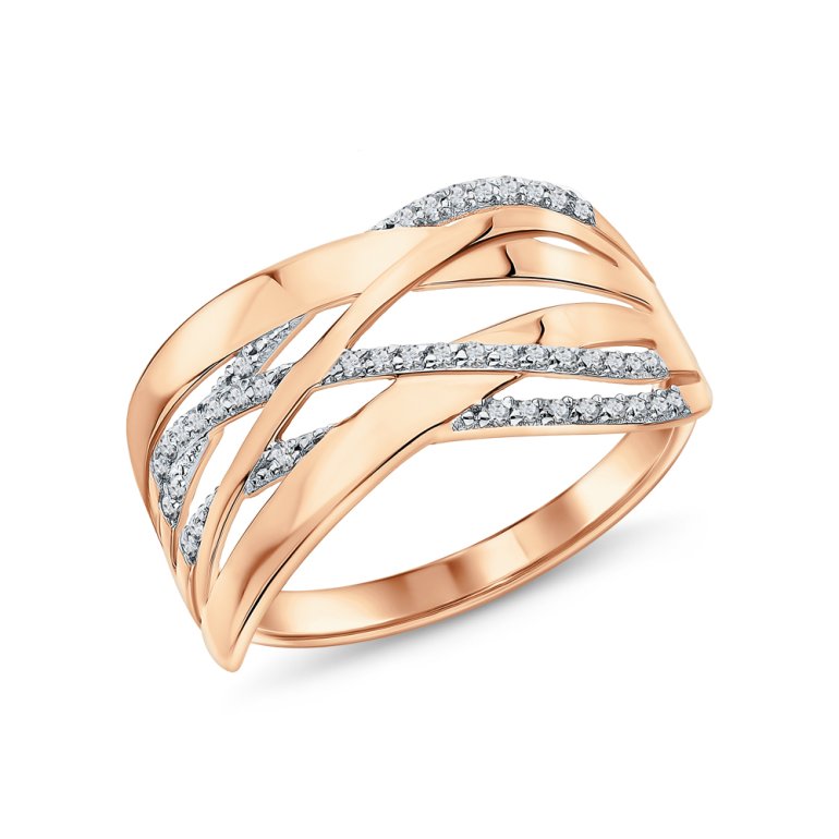 Кольцо, вставка: фианит бесцветный; Розовое золото 585 пробы.