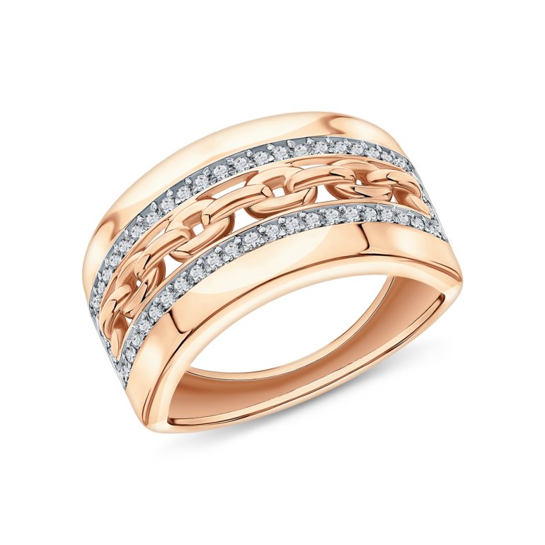 Кольцо, вставка: фианит бесцветный; Розовое золото 585 пробы.
