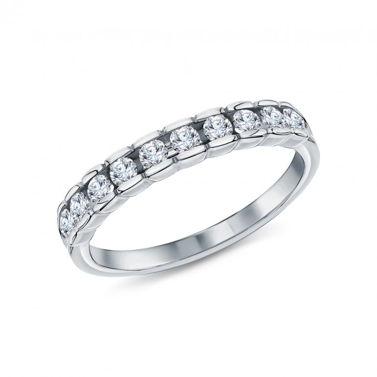 Кольцо с 10 бриллиантами, 0.453 карат, огранка круг 57 граней, цвет 3, чистота 6, тип огранки А; Белое золото 585 пробы.