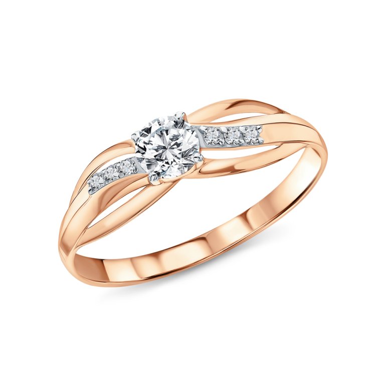 Кольцо, вставка: фианит бесцветный; Розовое золото 585 пробы.