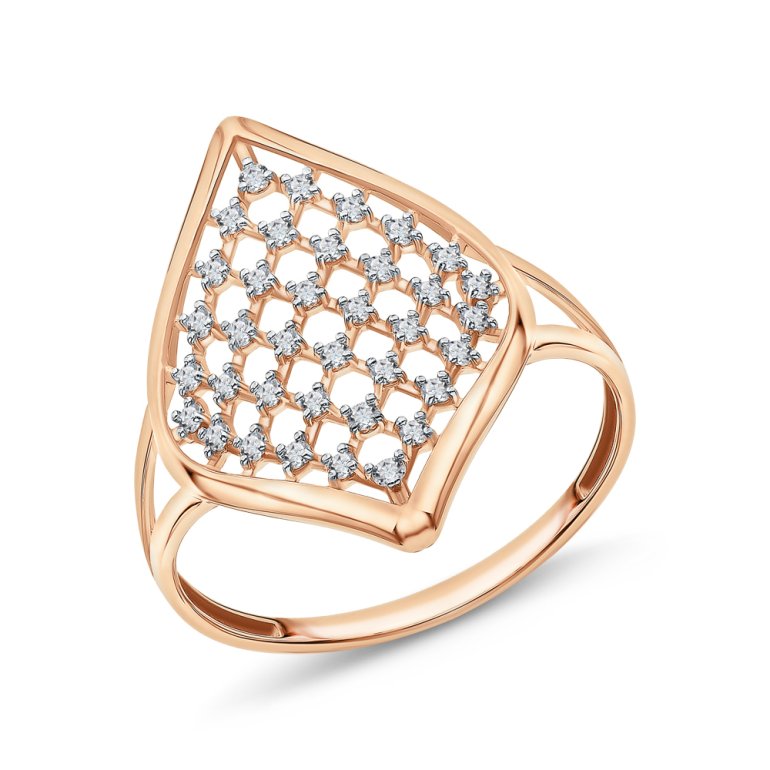 Кольцо, вставка: фианит бесцветный; Розовое золото 585 пробы.