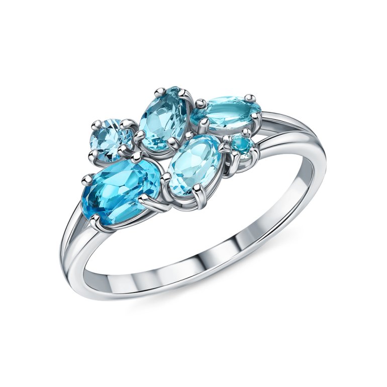 Кольцо с 6 топазами скай природными, 1.425 карат; Серебро 925 пробы.