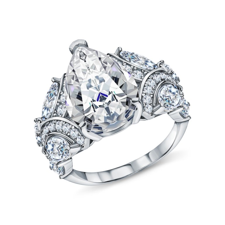 Кольцо, вставка: фианитом бесцветным; Серебро 925 пробы.