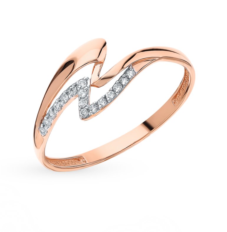 Кольцо, вставка: фианит; Розовое золото 585 пробы.