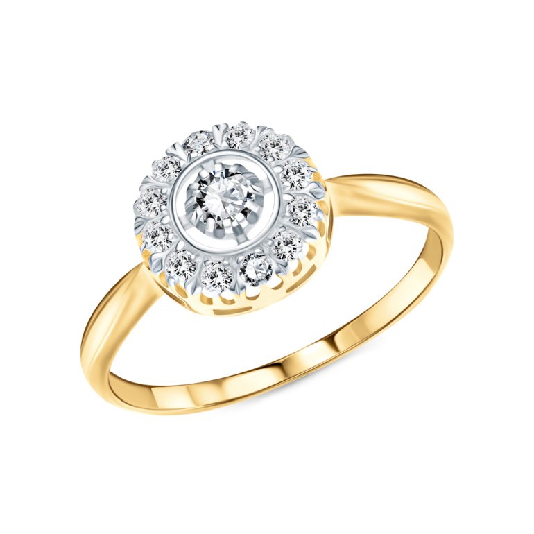 Кольцо, вставка: фианит бесцветный;  фианит бесцветный; Желтое золото 585 пробы.