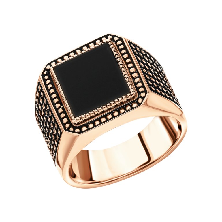 Кольцо с 1 агатом черным природным, огранка четырехлистник, тип огранки Б; золото 585 пробы.