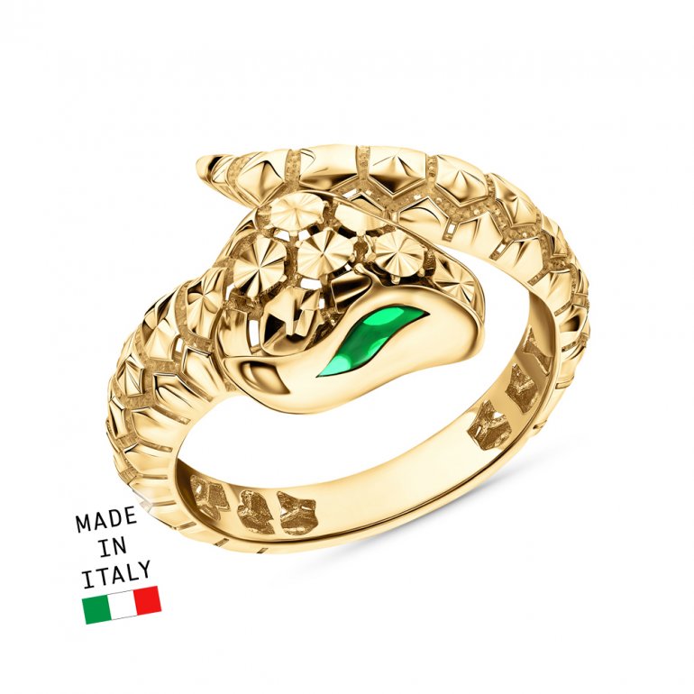 Кольцо, вставка: эмаль зеленая; Желтое золото 585 пробы.