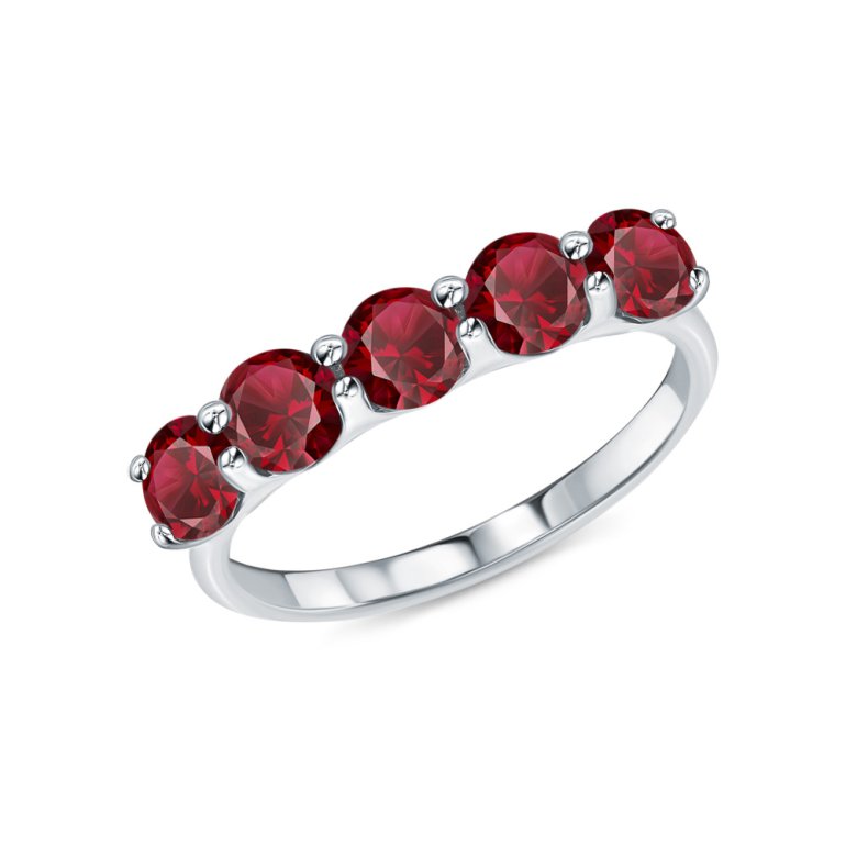 Кольцо с 5 рубинами С, 1.95 карат, чистота 2; Серебро 925 пробы.