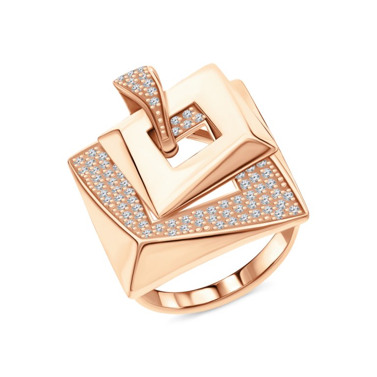 Кольцо, вставка: фианитом бесцветным; Розовое золото 585 пробы.