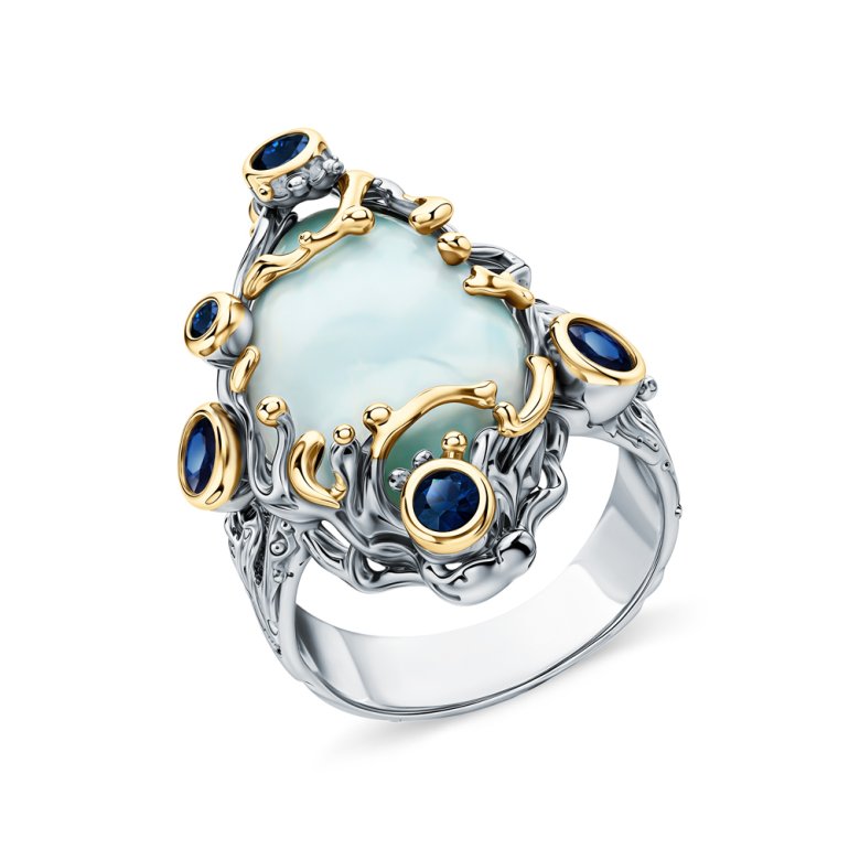 Кольцо с 1 ларимаром; шпинель синяя синтетическая; Серебро 925 пробы.