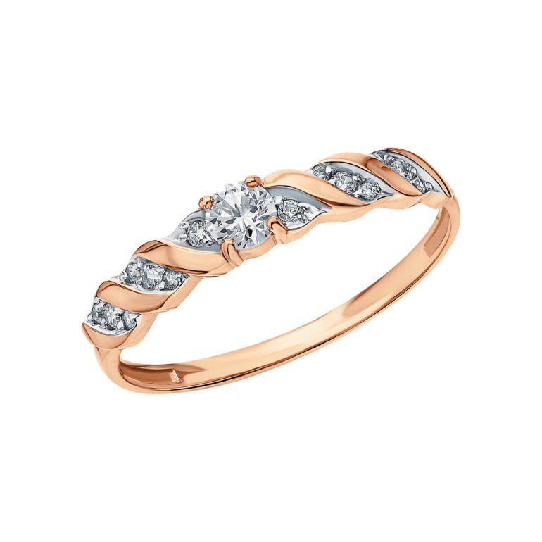 Кольцо, вставка: фианитом бесцветным; Розовое золото 585 пробы.