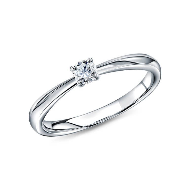 Кольцо с 1 бриллиантом, 0.108 карат, огранка круг 57 граней, цвет 3, чистота 6, тип огранки А; Белое золото 585 пробы.