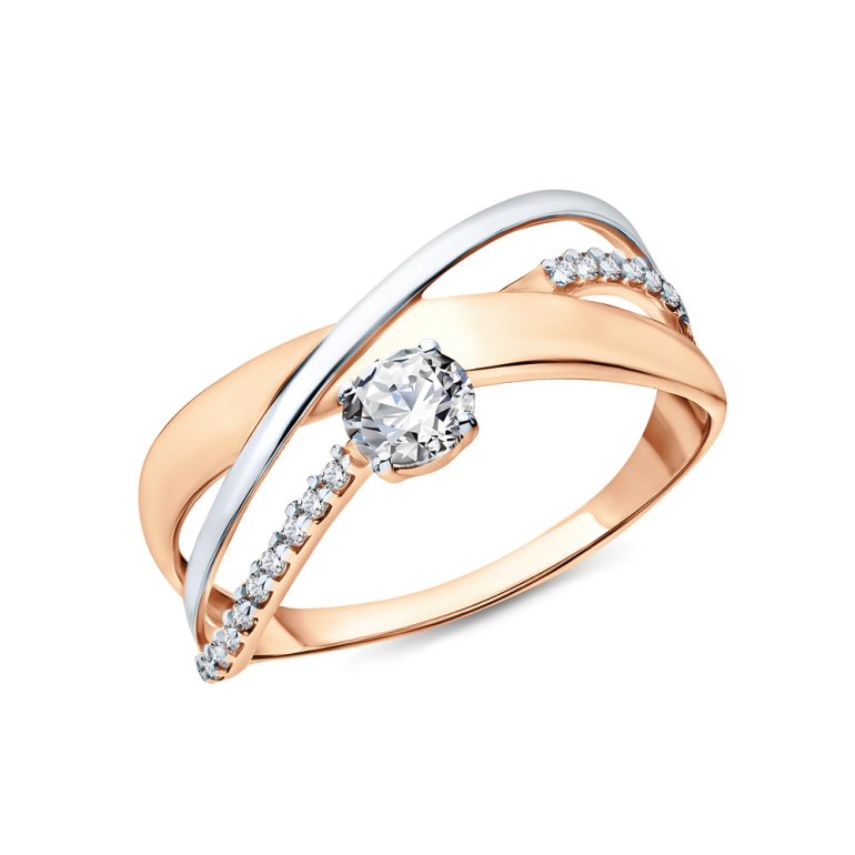 Кольцо, вставка: фианитом бесцветным; Розовое золото 585 пробы.