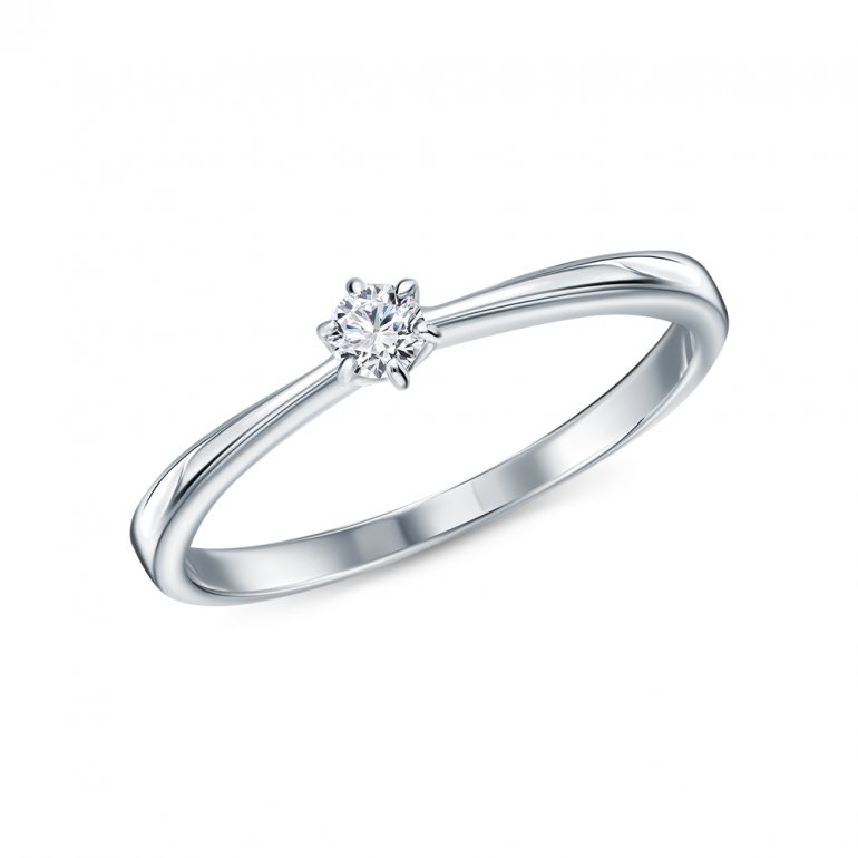 Кольцо с 1 бриллиантом, 0.079 карат, огранка круг 57 граней, цвет 3, чистота 6, тип огранки А; Белое золото 585 пробы.