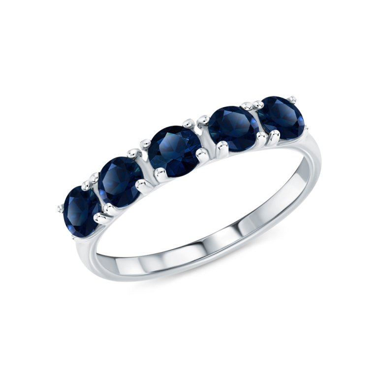 Кольцо с 5 сапфирами, 1. карат, чистота 2; Серебро 925 пробы.