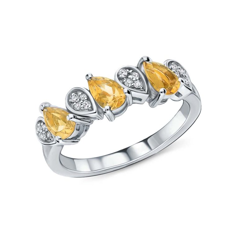Серебряное кольцо с цитринами и фианитами S43175-K9W-01 Кольца SUNLIGHT | V4.Ru: Маркетплейс