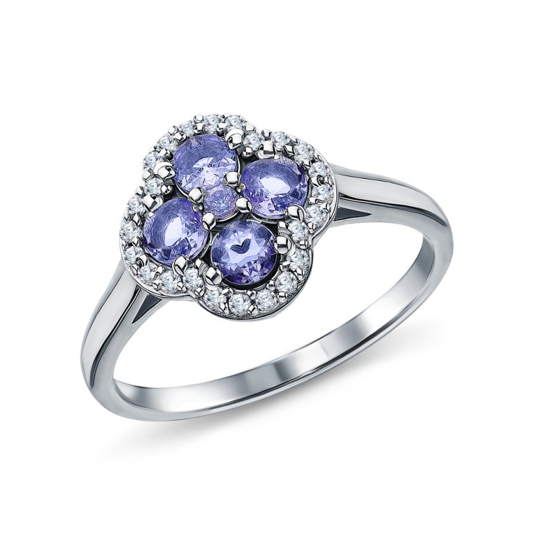 Серебряное кольцо с фианитами и танзанитами природными S42744-K9W-01 Кольца SUNLIGHT | V4.Ru: Маркетплейс