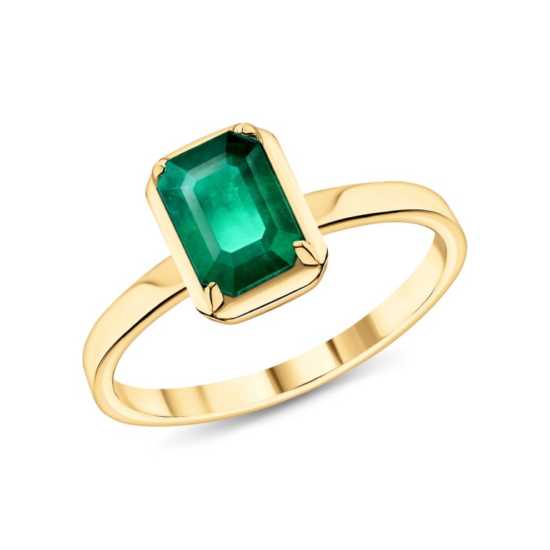 Кольцо с 1 изумрудом природным, 0.821 карат, цвет 3, чистота 3, тип огранки Б; Желтое золото 585 пробы.