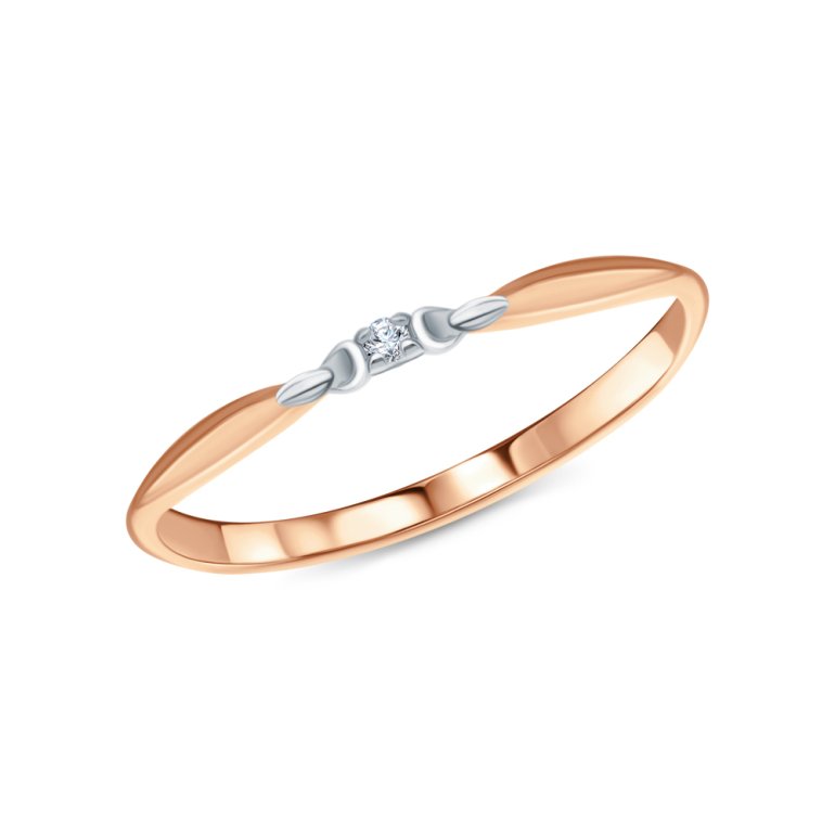 Кольцо с 1 бриллиантом, 0.012 карат, огранка круг 17 граней, цвет 2, чистота 2, тип огранки Б; Розовое золото 375 пробы.