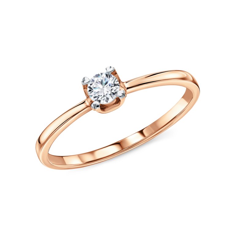 Кольцо с 1 бриллиантом природным, 0.181 карат, огранка круг 57 граней, цвет 3, чистота 6, тип огранки А; Розовое золото 585 пробы.