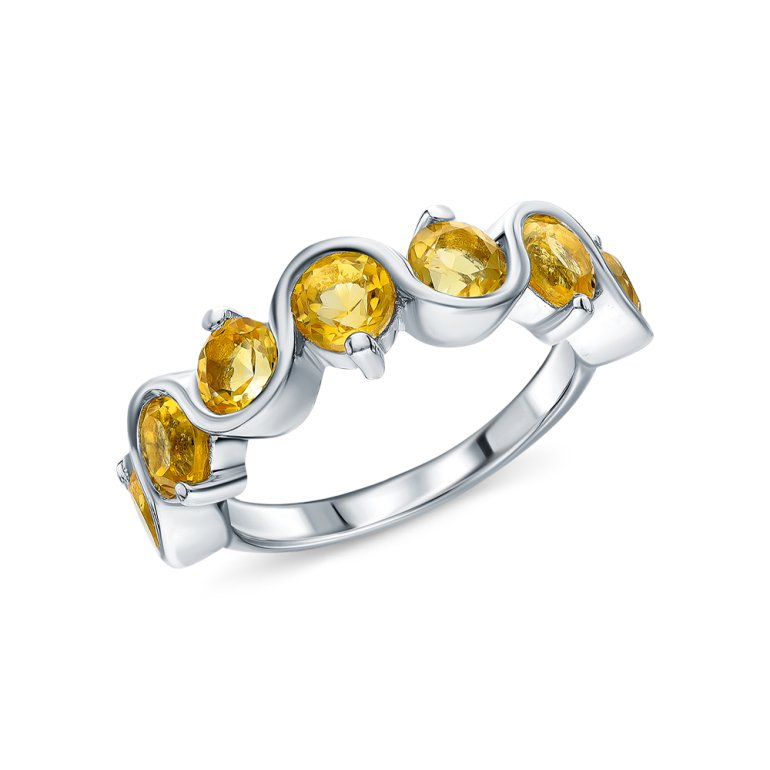 Кольцо с 7 цитринами природными, 1.68 карат; Серебро 925 пробы.