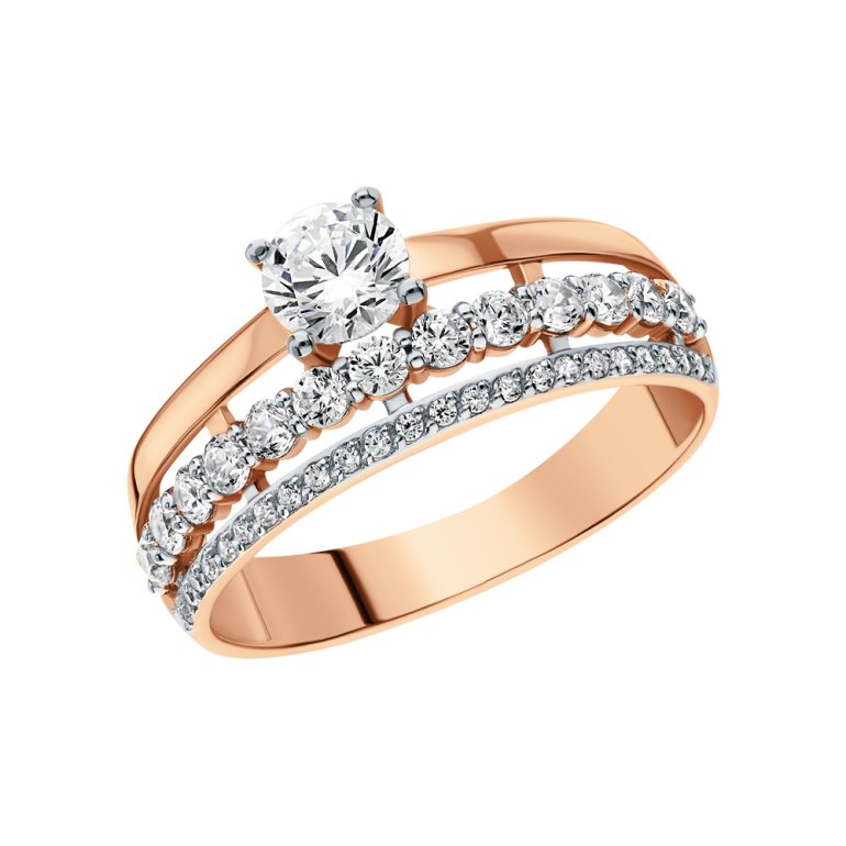 Кольцо, вставка: фианитом бесцветным; Розовое золото 585 пробы.