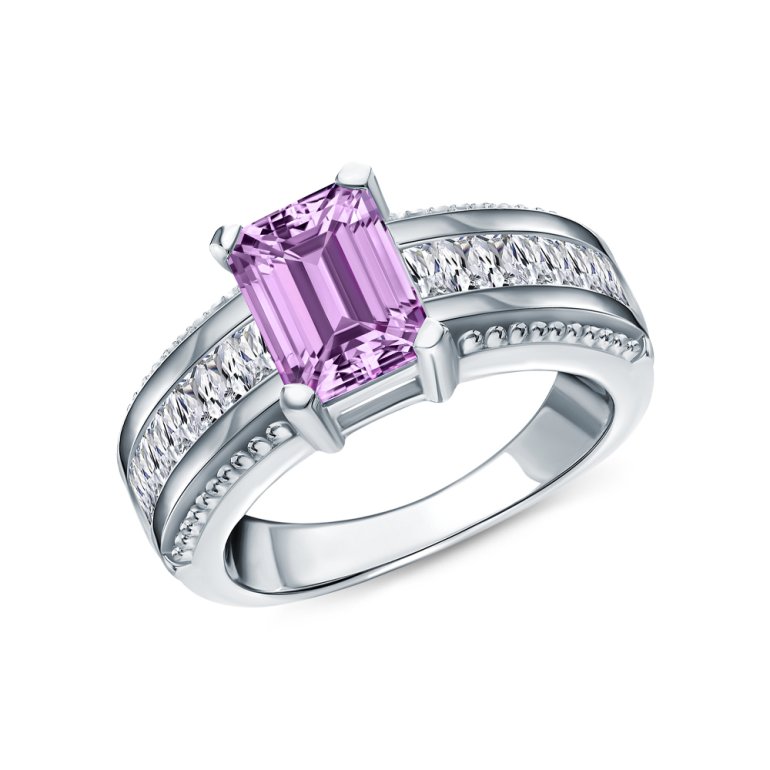 Серебряное кольцо с фианитами и аметистами природными S43090-K9W-01 Кольца SUNLIGHT | V4.Ru: Маркетплейс