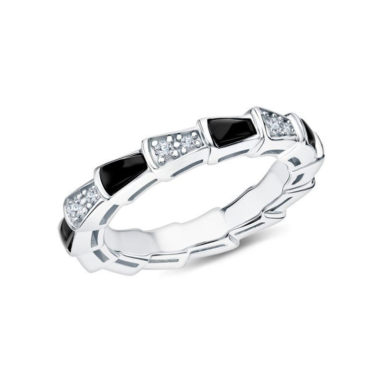Серебряное кольцо с фианитами и ониксом природным S42643-K9W-01 Кольца SUNLIGHT | V4.Ru: Маркетплейс