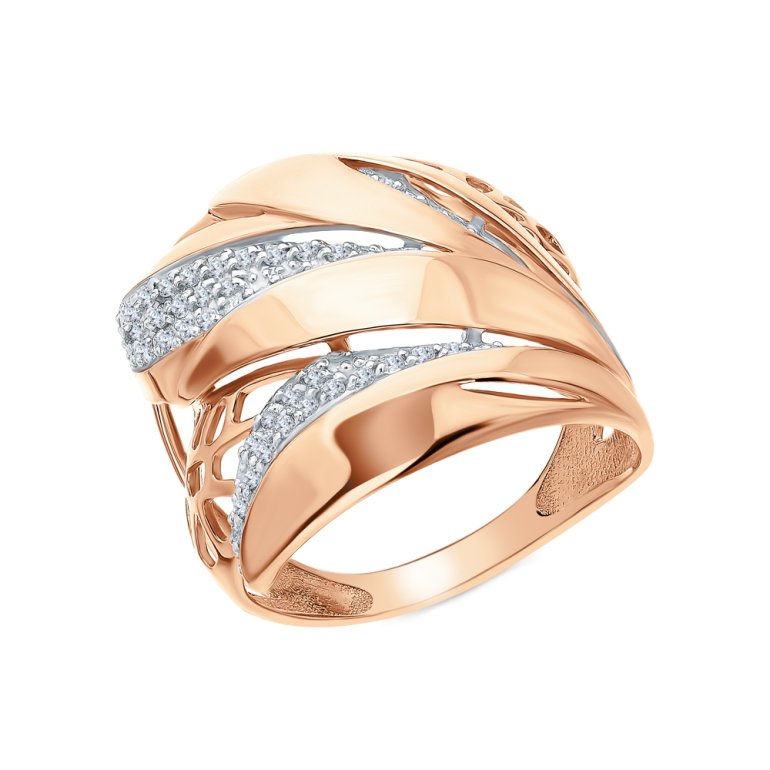 Кольцо, вставка: фианит бесцветный; Розовое золото 585 пробы.