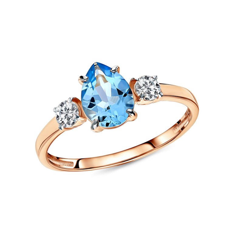 Кольцо с 1 топазом свисс, 1.07 карат, тип огранки Б; фианитом бесцветным; Розовое золото 585 пробы.