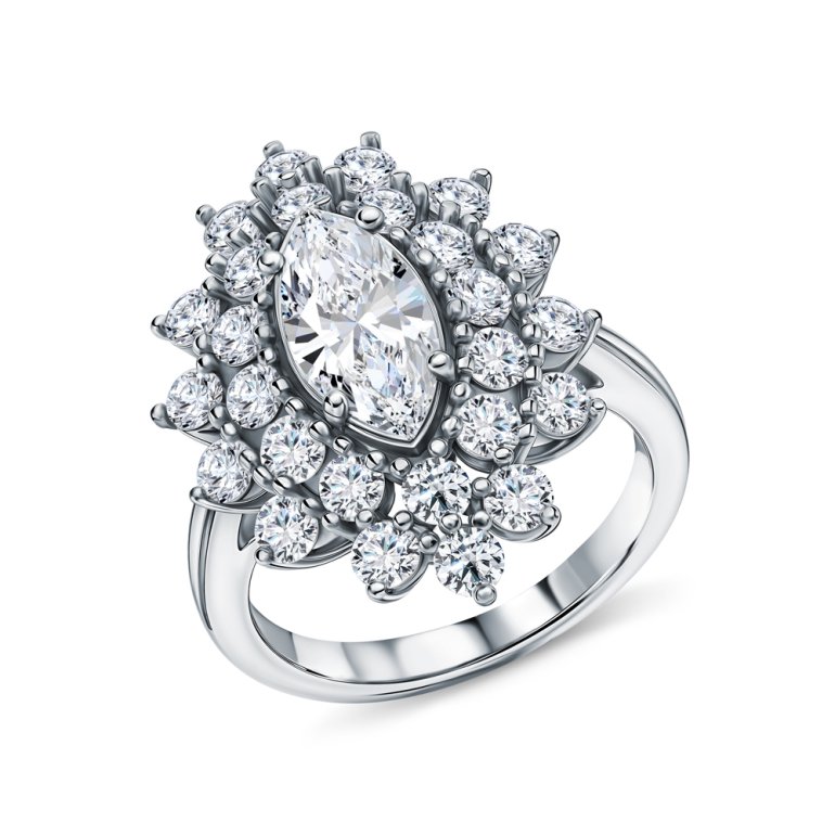 Кольцо с 27 муассанитами, 10.22 карат; Серебро 925 пробы.