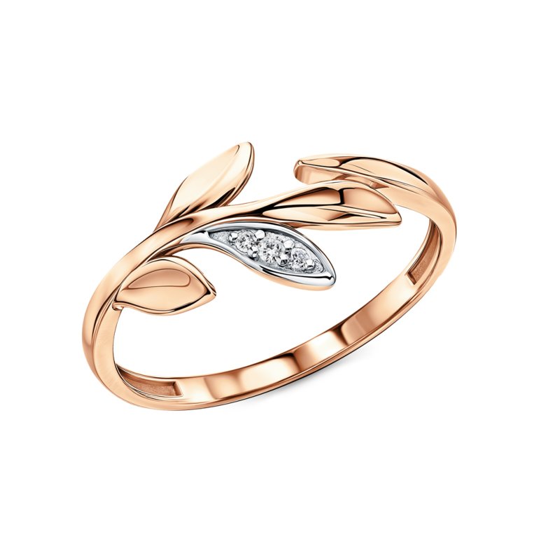 Кольцо, вставка: фианит; Розовое золото 585 пробы.