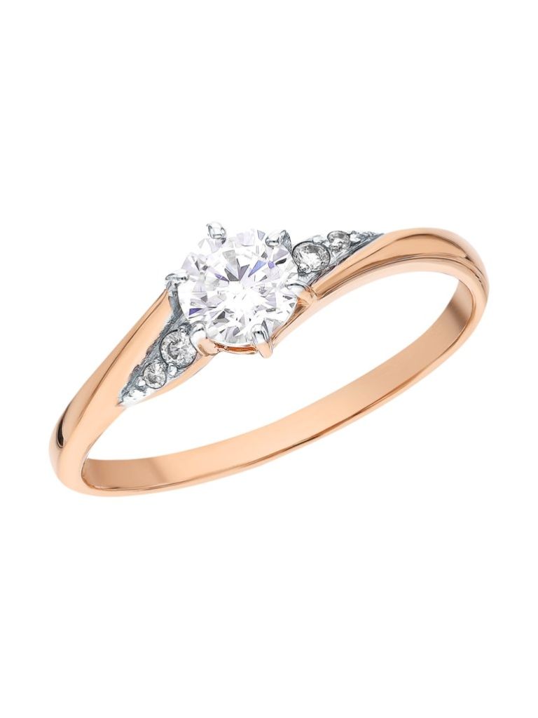Кольцо, вставка: фианит;  фианит;  фианит; Розовое золото 585 пробы.
