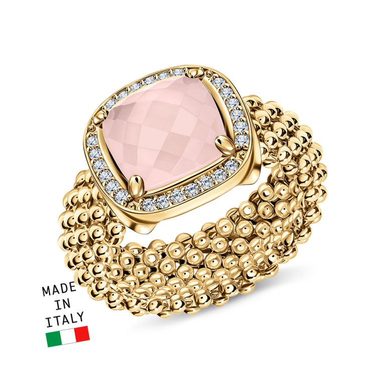 Серебряное кольцо с фианитами и кварцем синтетическим