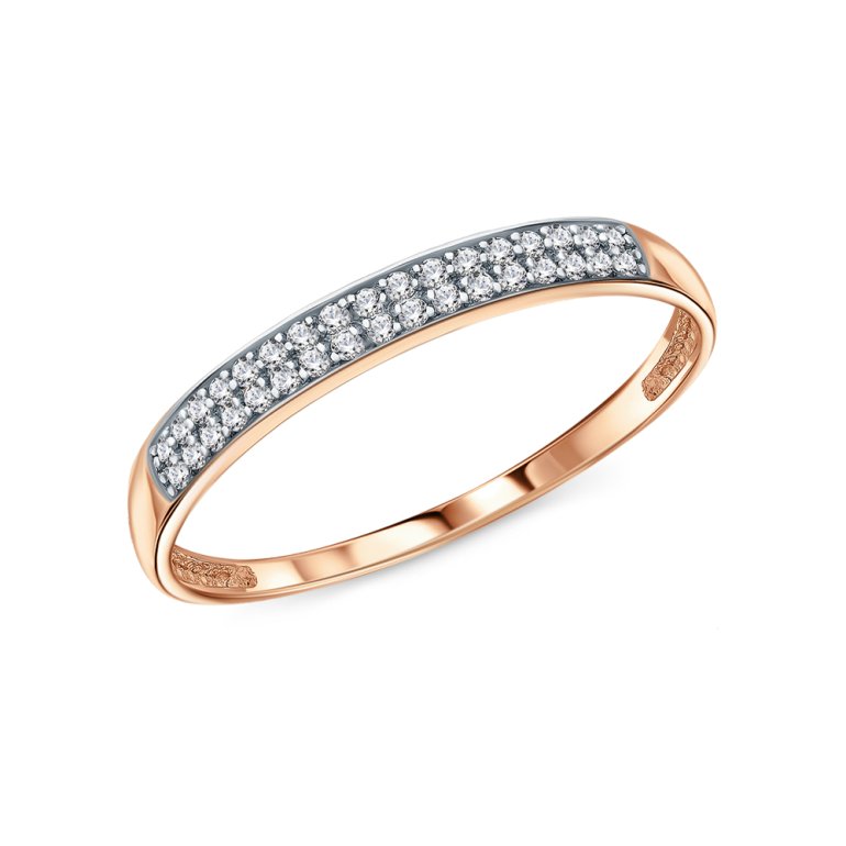 Кольцо с 34 фианитами б/ц, 0.275 карат, тип огранки Б; Розовое золото 585 пробы.