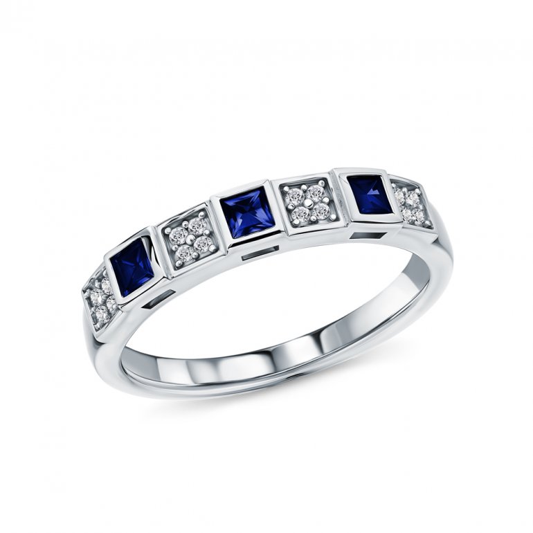 Кольцо с 3 сапфирами природными, 0.376 карат, цвет 4, чистота 4, тип огранки Б; фианитом бесцветным; Серебро 925 пробы.