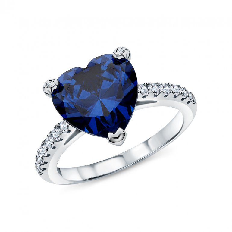 Кольцо, вставка: фианит синий;  фианитом бесцветным; Серебро 925 пробы.