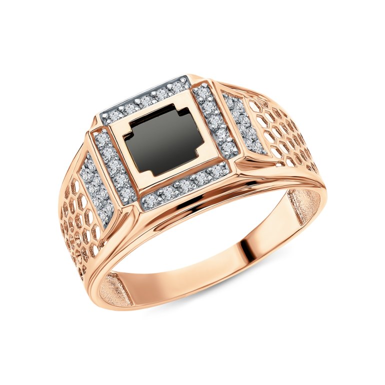 Кольцо, вставка: фианит бесцветный;  фианит бесцветный; Розовое золото 585 пробы.