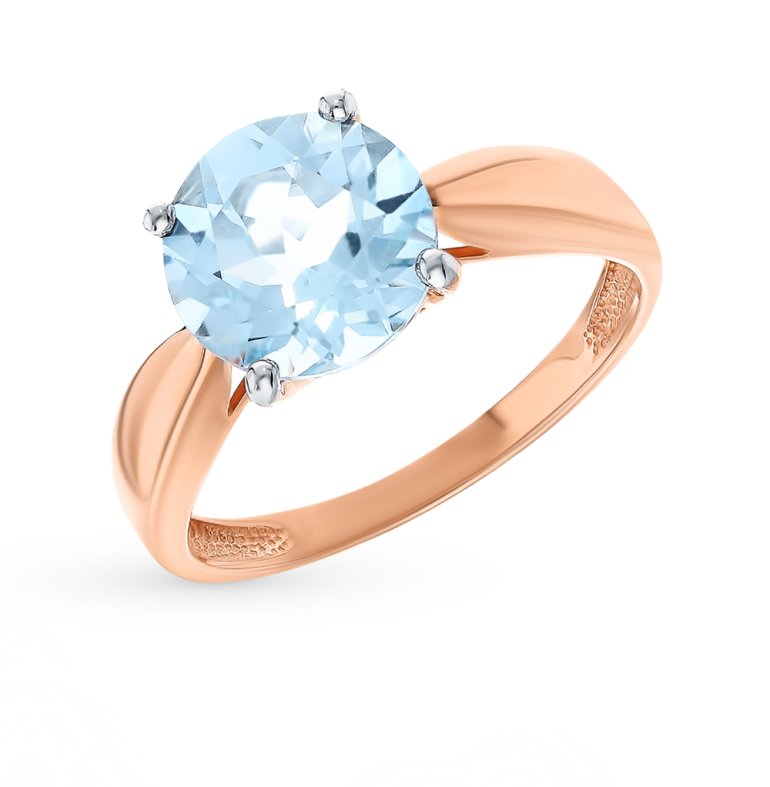 Кольцо с 1 топазом скай, 3.17 карат, тип огранки В; Розовое золото 585 пробы.