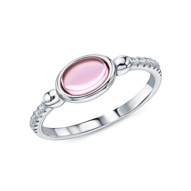 Кольцо, вставка: ситалл розовый;  фианитом бесцветным; Серебро 925 пробы.
