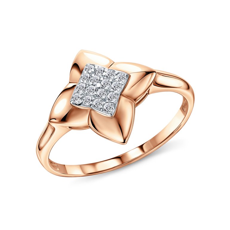 Кольцо, вставка: фианитом бесцветным; Розовое золото 585 пробы.