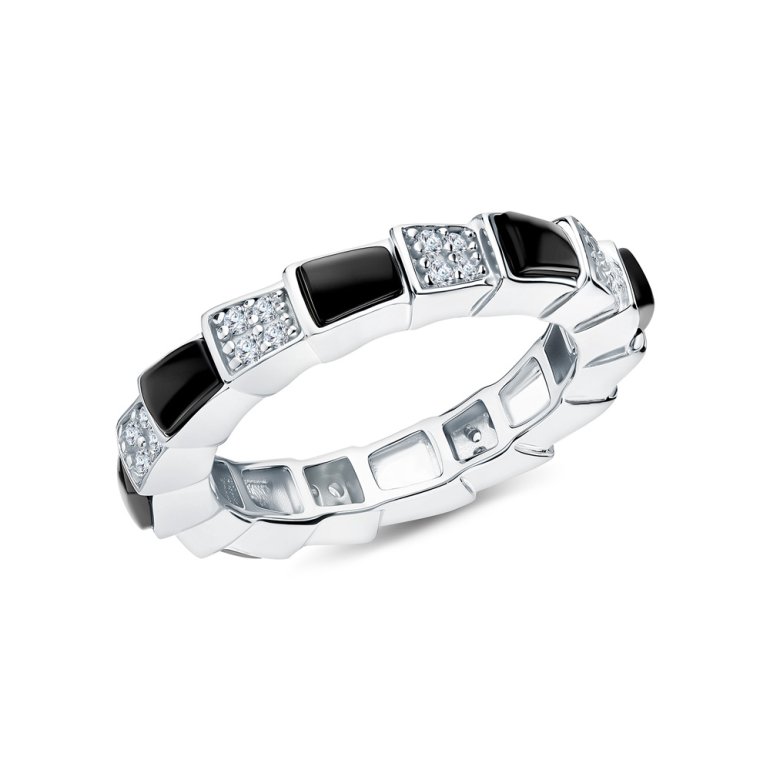 Серебряное кольцо с фианитами и ониксом природным S42642-K9W-01 Кольца SUNLIGHT | V4.Ru: Маркетплейс