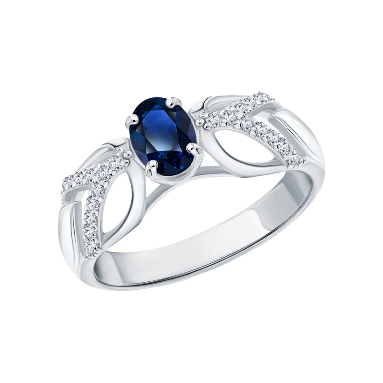Серебряное кольцо с фианитами и сапфиром природным S42991-K9W-01 Кольца SUNLIGHT | V4.Ru: Маркетплейс