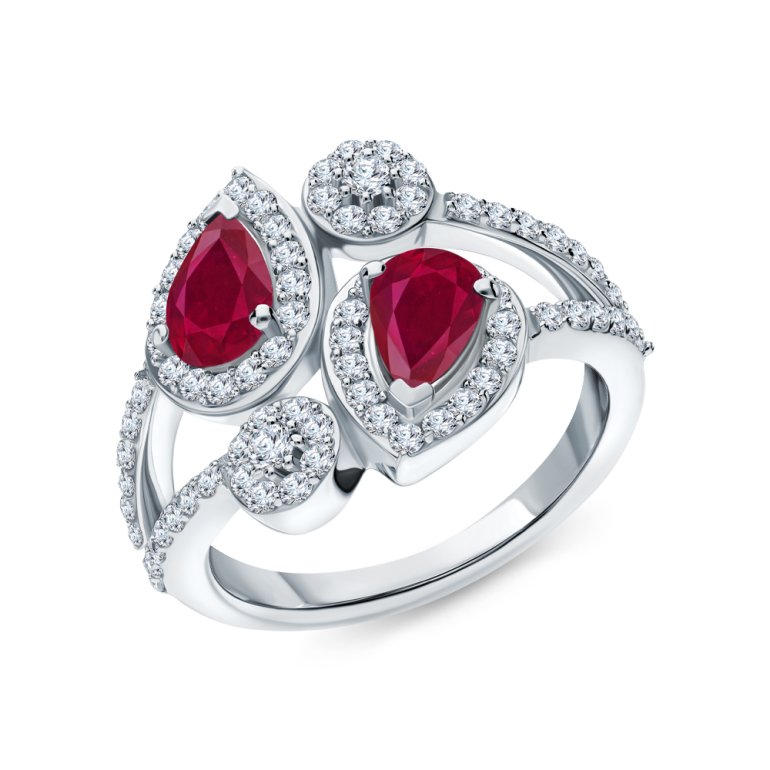 Серебряное кольцо с фианитами и рубинами природными S43065-K9W-01 Кольца SUNLIGHT | V4.Ru: Маркетплейс