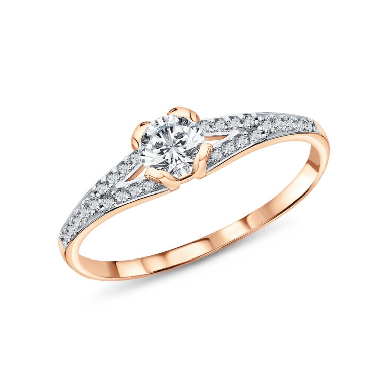 Кольцо, вставка: фианит бесцветный; Розовое золото 585 пробы.