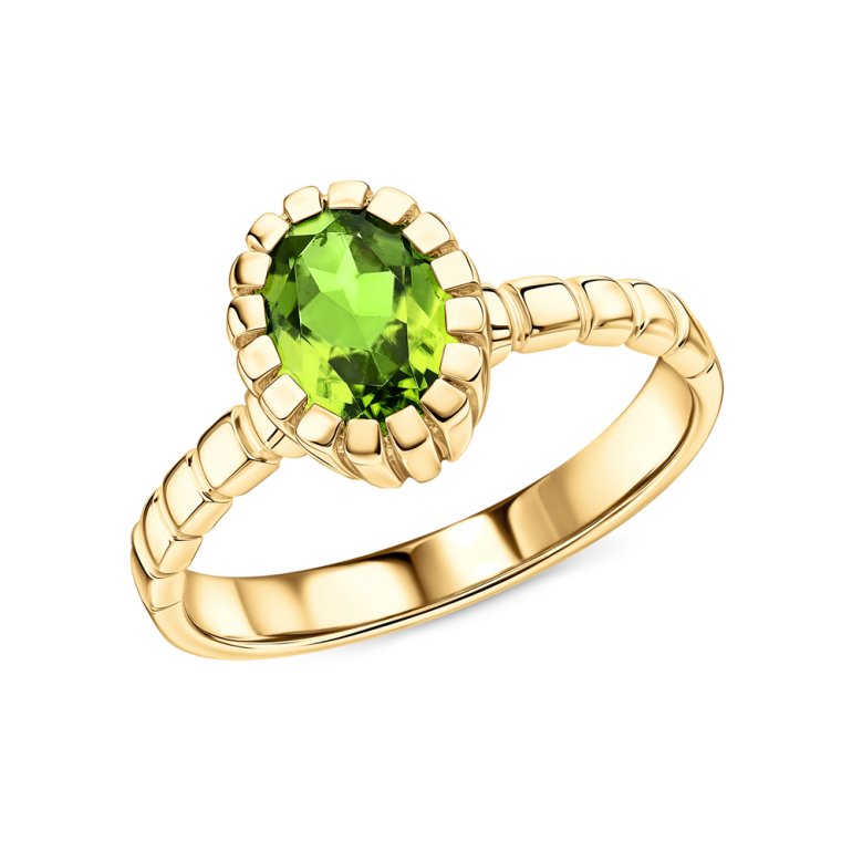 Кольцо с 1 хризолитом природным, 1.1 карат; Серебро 925 пробы.