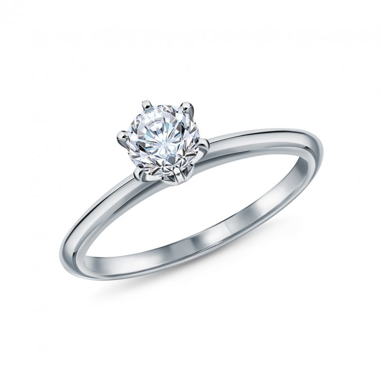 Кольцо с 1 бриллиантом, 0.319 карат, огранка круг 57 граней, цвет 3, чистота 6, тип огранки А; Белое золото 585 пробы.