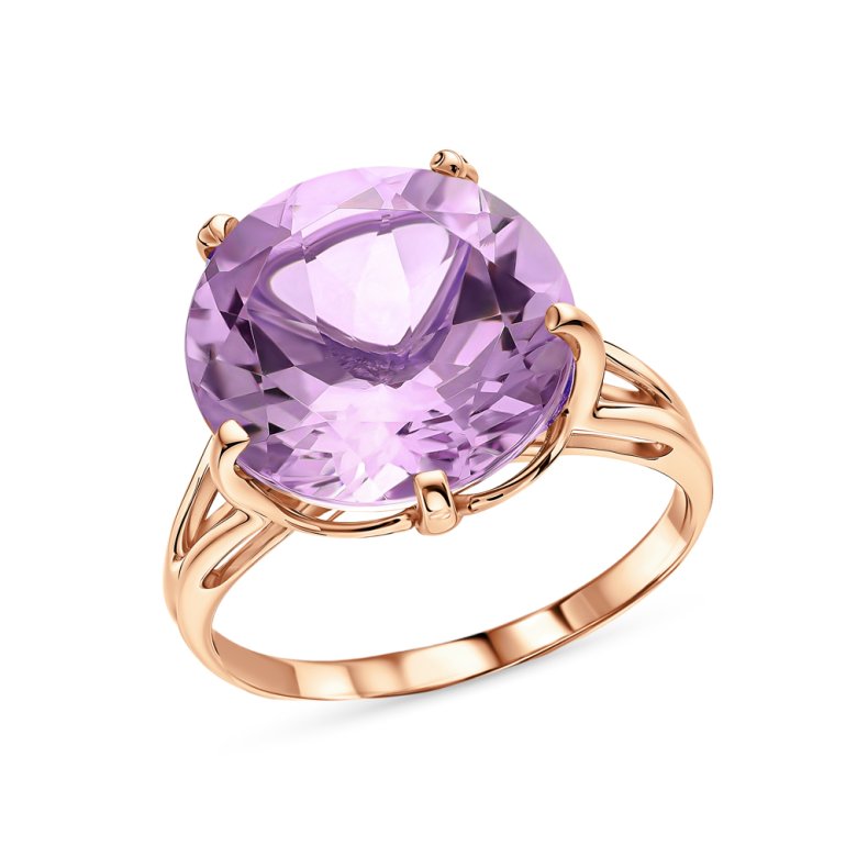 Кольцо с 1 аметистом природным, 4.96 карат; Розовое золото 585 пробы.